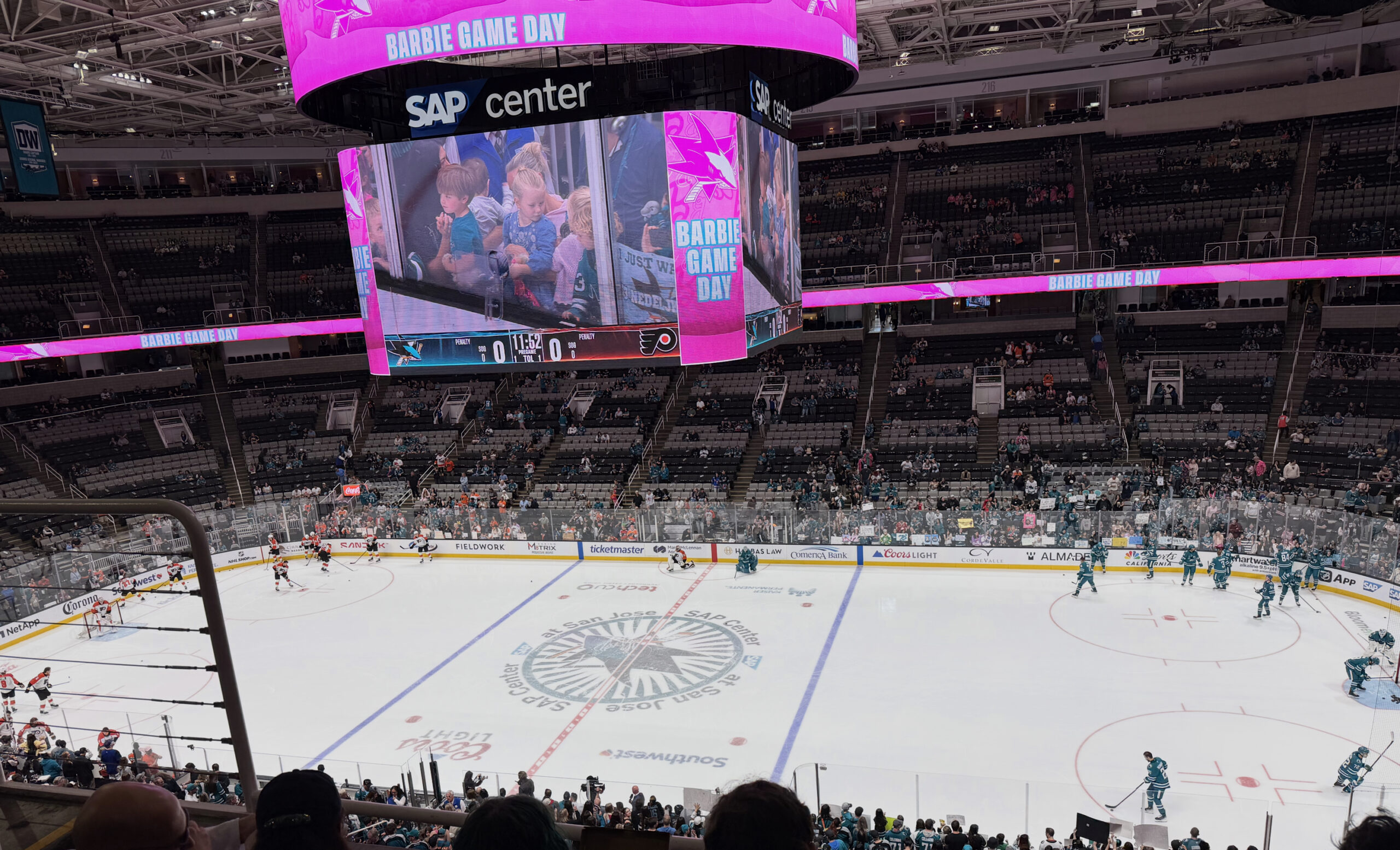 Final score Flyers 4, Sharks 1. The teams were both a little over .500 going into the game, so I don’t think we were seeing the cream of the league playing here. Katy said both teams are pretty chaotic which adds to the uncertainty.